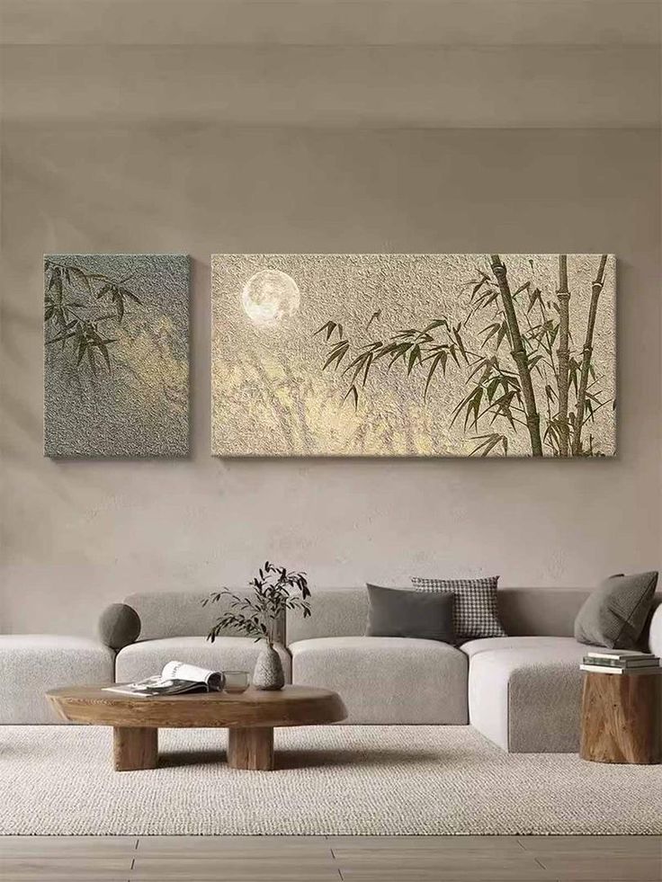 تابلو نقاشی رنگ روغن زمینه برجسته نی و ماه